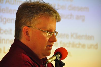 In Vertretung für Werner Welp verlas Manfred Flöther (beide Niedersächsisches Landesamt für Soziales, Jugend und Familie – Landessozialamt LS) dessen Grußwort. Dieser hob die gute Zusammenarbeit zwischen der „Freien Wohlfahrt“ und dem LS hervor, die 2012 auch zu gemeinsamen Aktionen beim Tag des Sprechens geführt hatte. Bezüglich der Bestrebungen zur Reform der Eingliederungshilfe verwies er auf die gute Praxis eines erfolgreichen Fallmanagements in der niedersächsischen Sprachheilarbeit. Das Grußwort können Sie hier herunterladen.