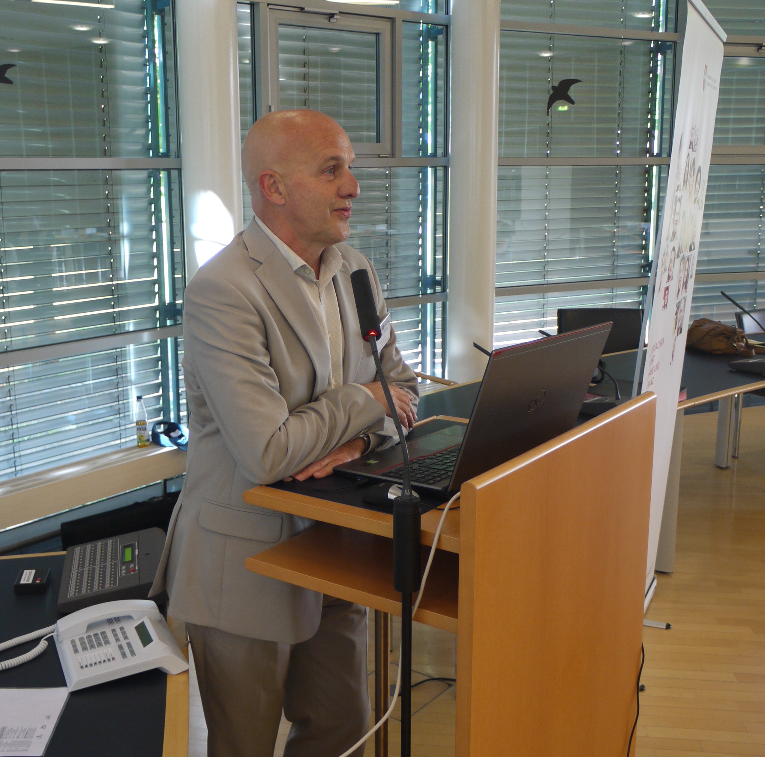Anschließend stellte Manfred Flöther (Fachberatung Hören, Sprache und Sehen im Niedersächsischen Landesamt für Soziales, Jugend und Familie - LS) die neuen Entwicklungen im Team vor. So hat sich durch die Mitwirkung von Frau Backsmann die Teambezeichnung geändert: "Sehen" ist als Aufgabe hinzugekommen. Neu im Team sind außer Frau Backsmann auch Ellen Villarreal und Rüdiger Knuth - dadurch haben sich auch die Zuständigkeiten im Land Niedersachsen verändert. Das Fachberatungsteam hatte als Maßnahme der Qualitätssicherung vor der Schulungstagung die wichtigsten Formulare für die Sprechtagsarbeit per Mail an die Ämter verschickt. Neue Sicherheitsrichtlinien verhinderten in einigen Kommunen die digitale Zustellung. Deshalb wurde als neuer Service des LS eine Internetseite eingerichtet, von der diese Dateien heruntergeladen werden können: Berichtsformulare. Außerdem wies Herr Flöther auf einige Materialien (Mehrsprachigkeit, Gebärdenposter der Aktion Mensch) hin, die in der Hör- und Sprachheilberatung Verwendung finden können. Die Präsentation des Vortrags (inkl. der Landkarte mit den neuen Zuständigkeiten) finden Sie hier .