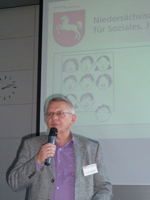 Das Team „Fachberatung Hören und Sprache / Allgemeinpädagogischer Dienst des Landesarztes“ hatte in die Außenstelle des Landessozialamtes in Hannover eingeladen. Diese mittlerweile traditionelle Tagung der niedersächsischen Sprachheilkindergärten und der Kindergärten für Hörgeschädigte mit den Sprachheilbeauftragten des Landes Niedersachsen dient seit ihrer Gründung im Jahre 2008 der Fortbildung und dem Austausch im Sinne einer Qualitätssicherung in der „teilstationären Sprachheilbehandlung" als interdisziplinäre Komplexleistung im Land Niedersachsen. Über 100 Personen waren nach Hannover gekommen, um sich diesmal mit dem Schwerpunkt-Thema „Auditive Verarbeitungs- und Wahrnehmungsstörungen (AVWS)", der Internet-Plattform „sprakiwiki“ und einigen aktuellen Fragen aus den Einrichtungen zu beschäftigen.