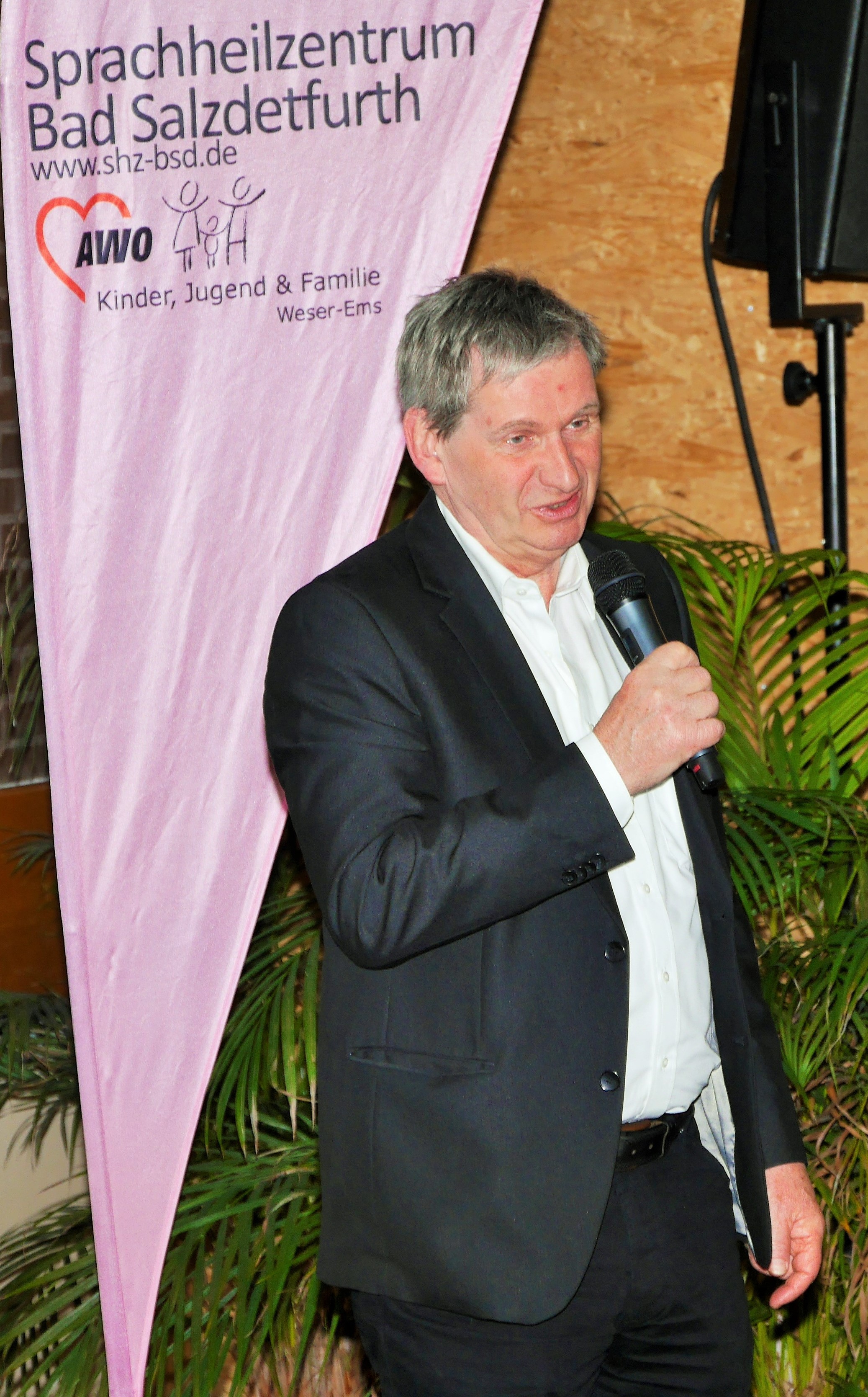 Manfred Flöther (LS) betont in seinem Grußwort die Erfolgsgeschichte der Sprachheilarbeit in Niedersachsen.