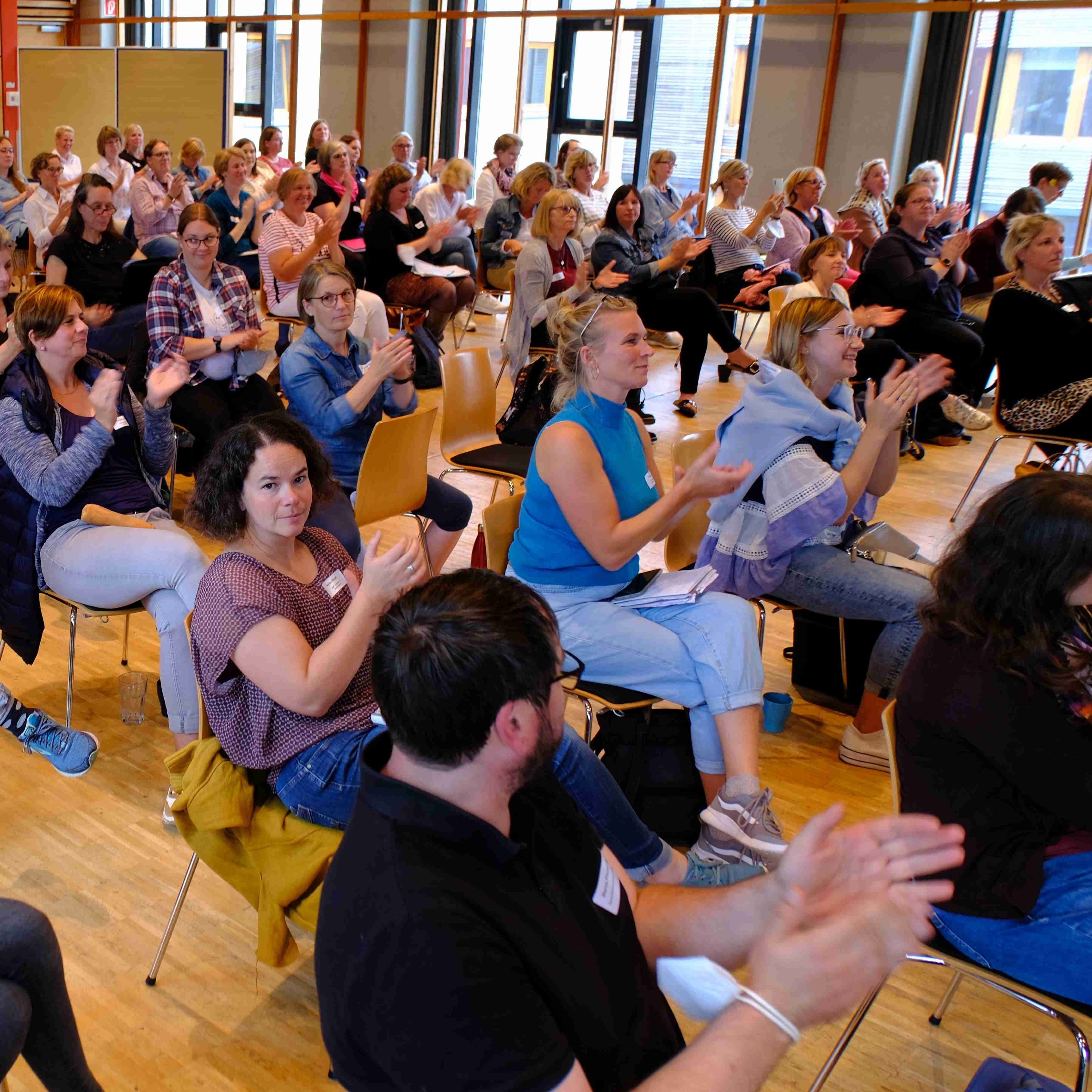 Am 14.09.2022 fand nach drei digitalen Tagungen während der Coronapandemie die SpraKiKon erneut als Präsenzveranstaltung in Hannover statt. 88 Teilnehmerinnen und Teilnehmer aus 45 Sprachheilkindergärten Niedersachsens und das Team der Fachberatung trafen sich im Stadtteilzentrum Krokus in Hannover, um sich fortzubilden und miteinander ins Gespräch zu kommen.