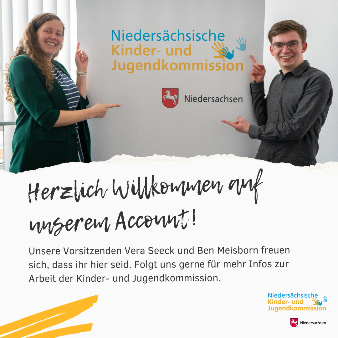 Ab sofort werden wir auf diesem Account unsere Arbeit als Niedersächsische Kinder- und Jugendkommission aufzeigen. Selbstverständlich wird unsere Homepage in altbekannter Form bestehen bleiben!