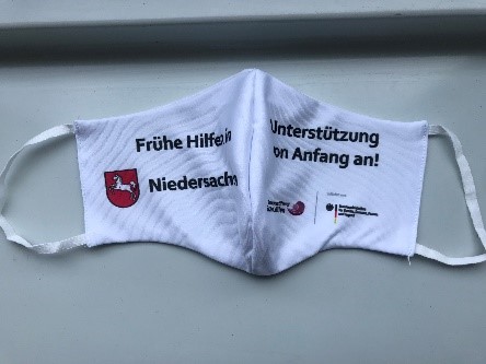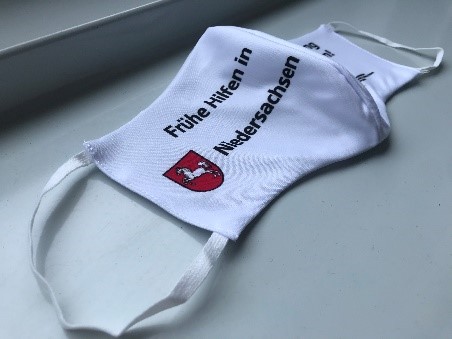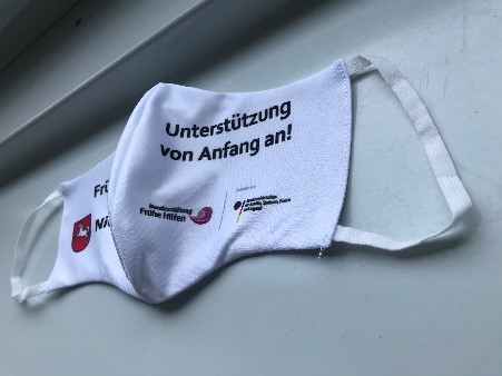 Mund-Nasen-Schutz als Werbeträger für die Frühen Hilfen