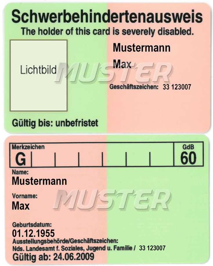 Sie können mit dem Schwer-Behinderten-Ausweis in grün und orange
